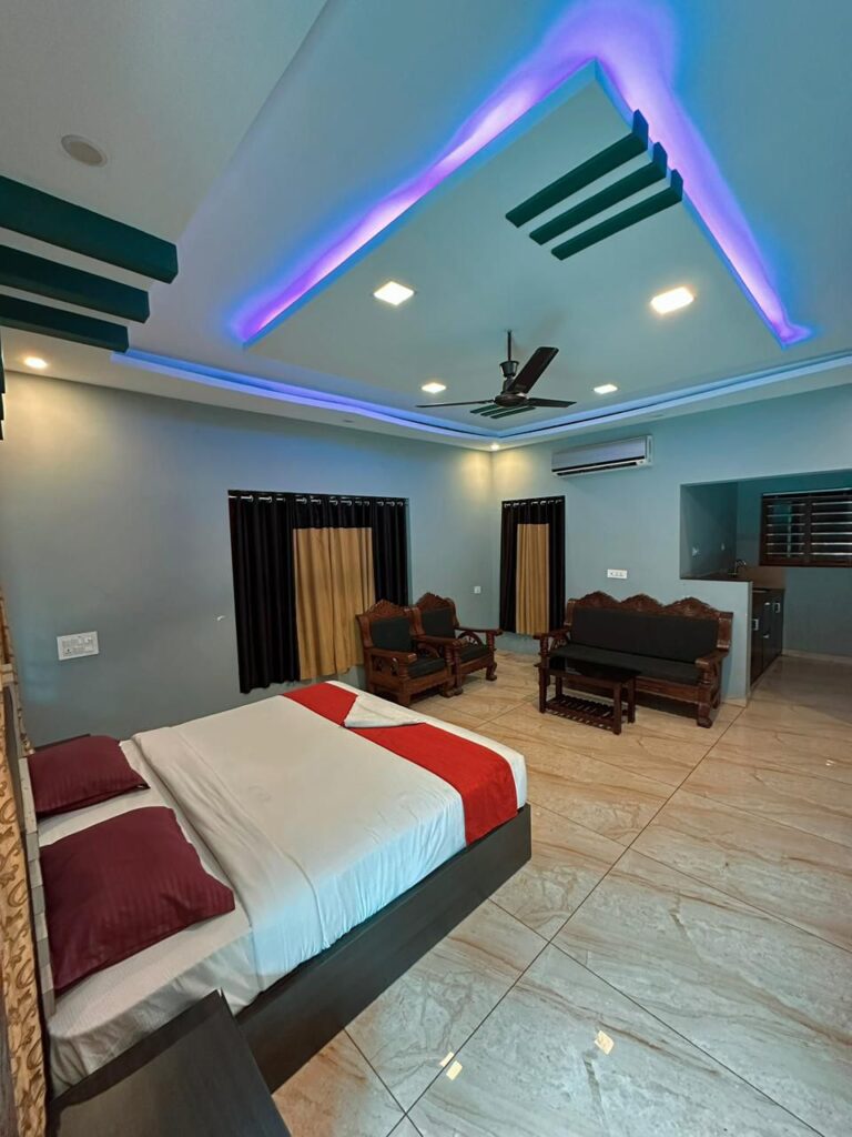 🏞️ Peace Land Resort, Vaduvanchal – Description Peace Land Resort is a beautiful and peaceful getaway located in the lush greenery of Vaduvanchal, Wayanad. The resort offers comfortable stay options, delicious food, and a wide range of activities, making it ideal for families, friends, corporate groups, and couples.Guests can enjoy spacious rooms, a refreshing swimming pool, indoor–outdoor games, and a relaxing environment surrounded by nature. With campfire options, BBQ facilities, and a sound system with no time restrictions, the resort is perfect for group gatherings and celebrations.Start your day with a wholesome breakfast featuring traditional Kerala dishes like puttu–kadala and puri–bhaji, along with tea/coffee and fresh watermelon. Evening refreshments include tea or coffee with cookies, and additional snacks can be arranged on request.The resort features 12 well-maintained rooms along with a dormitory setup. Accommodation options include 8 single bedrooms, 2 two-bedroom units, 2 cozy single huts, and a 7-bed space dormitory suitable for larger groups.Peace Land Resort also offers a range of leisure activities such as a kids’ play area, shuttle court, carrom, and a common swimming pool open from 7 AM to 11 PM. Campfire facilities are provided depending on the weather, and a BBQ setup is available (charcoal not included).Whether you are planning a relaxing holiday or an adventurous trip, Peace Land Resort gives you a perfect blend of comfort, fun, and natural beauty.